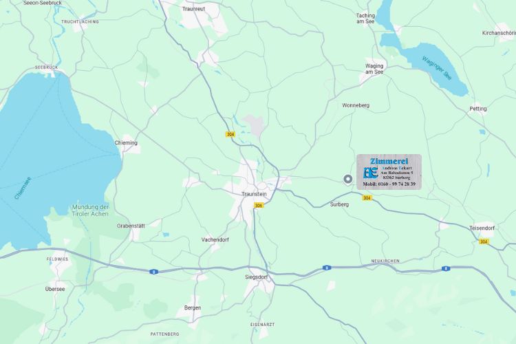 Die Zimmerei Eckart hat ihren Sitz in Surberg, einer idyllischen Gemeinde zwischen Chiemsee und Waginger See, und ist seit 2005 für ihre hochwertigen Zimmererarbeiten bekannt. Trotz der festen Heimatbasis ist das Unternehmen in der gesamten Region aktiv und bietet maßgeschneiderte Lösungen für Neubauten, Renovierungen und Sonderanfertigungen. Qualität und Präzision stehen dabei immer im Mittelpunkt.